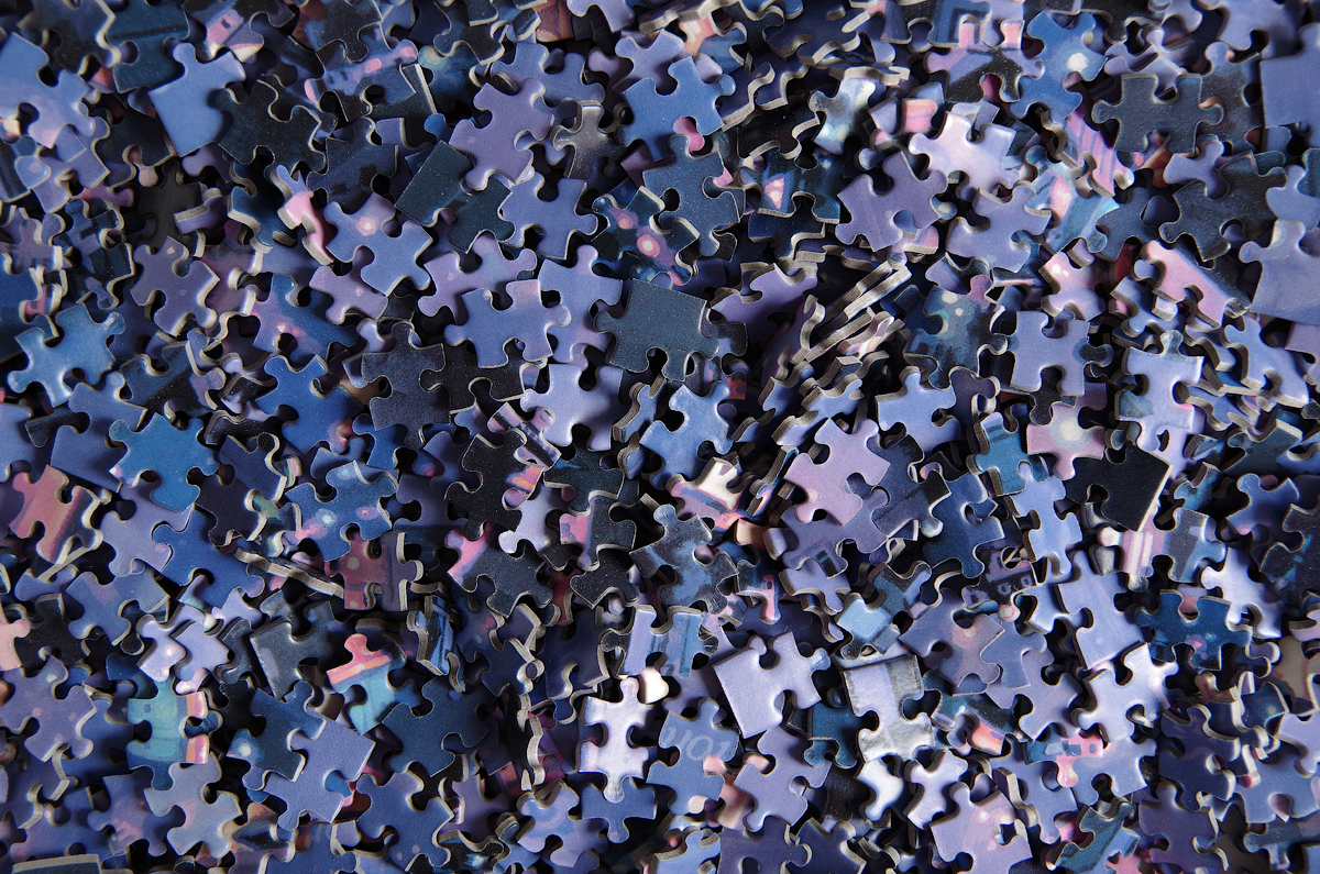 Вообще, таких пазлов у меня несколько, например Но вот этот пугает больше их всех вместе взятых Две тысячи одинаковых мелких сиреневых деталек (у него один и тот же рисунок с двух сторон). Я даже не знаю, как и подступиться к этому великолепию