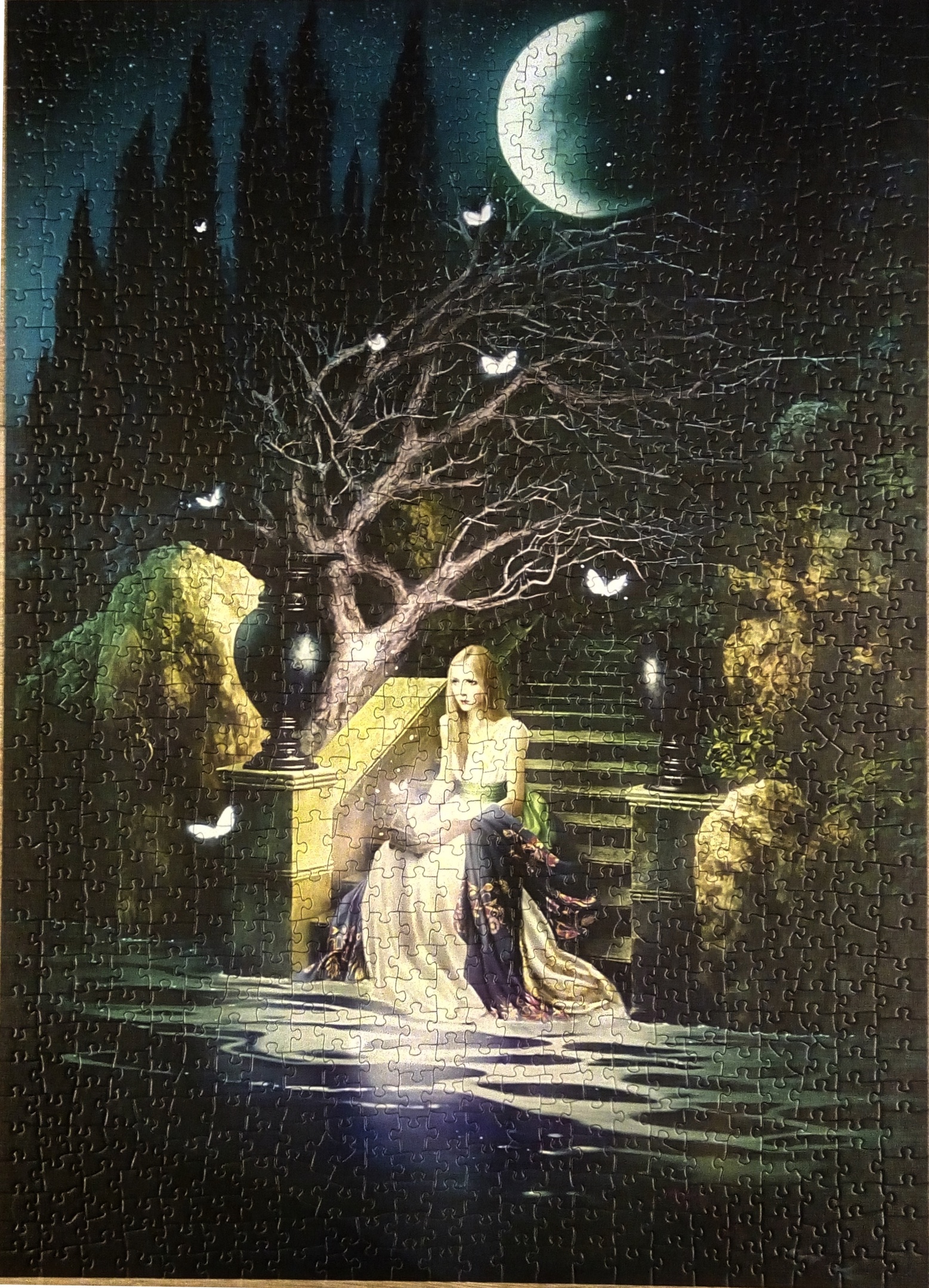 Белокурая красотка с волшебной шкатулкой, загадывающая свои десять желаний, и разлетающиеся десять белых мотыльков исполнять ее желания girl_in_love