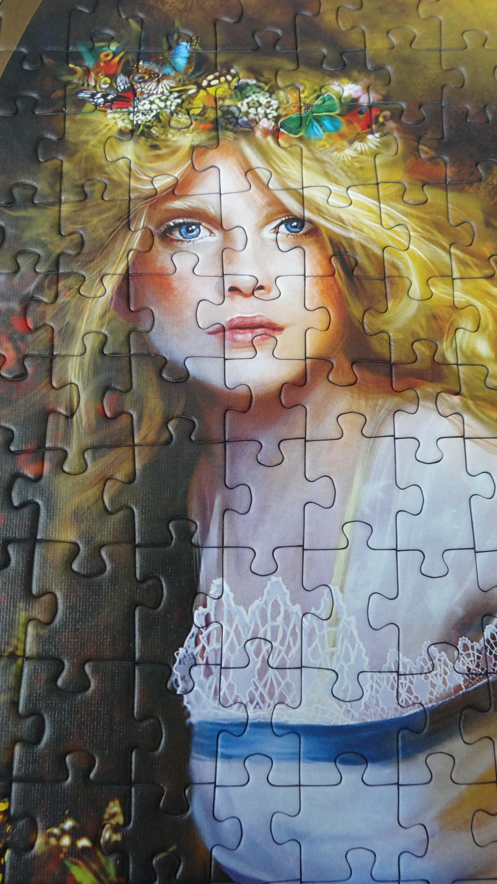 По натуре я пейзажист-цветочник-домичник и людей на пазлах не люблю. Но этот - очень заинтриговал. Девушки такие естественные, не манерные, и интригующие. Хоть чернявка с бокалом, хоть наивная феечка.
