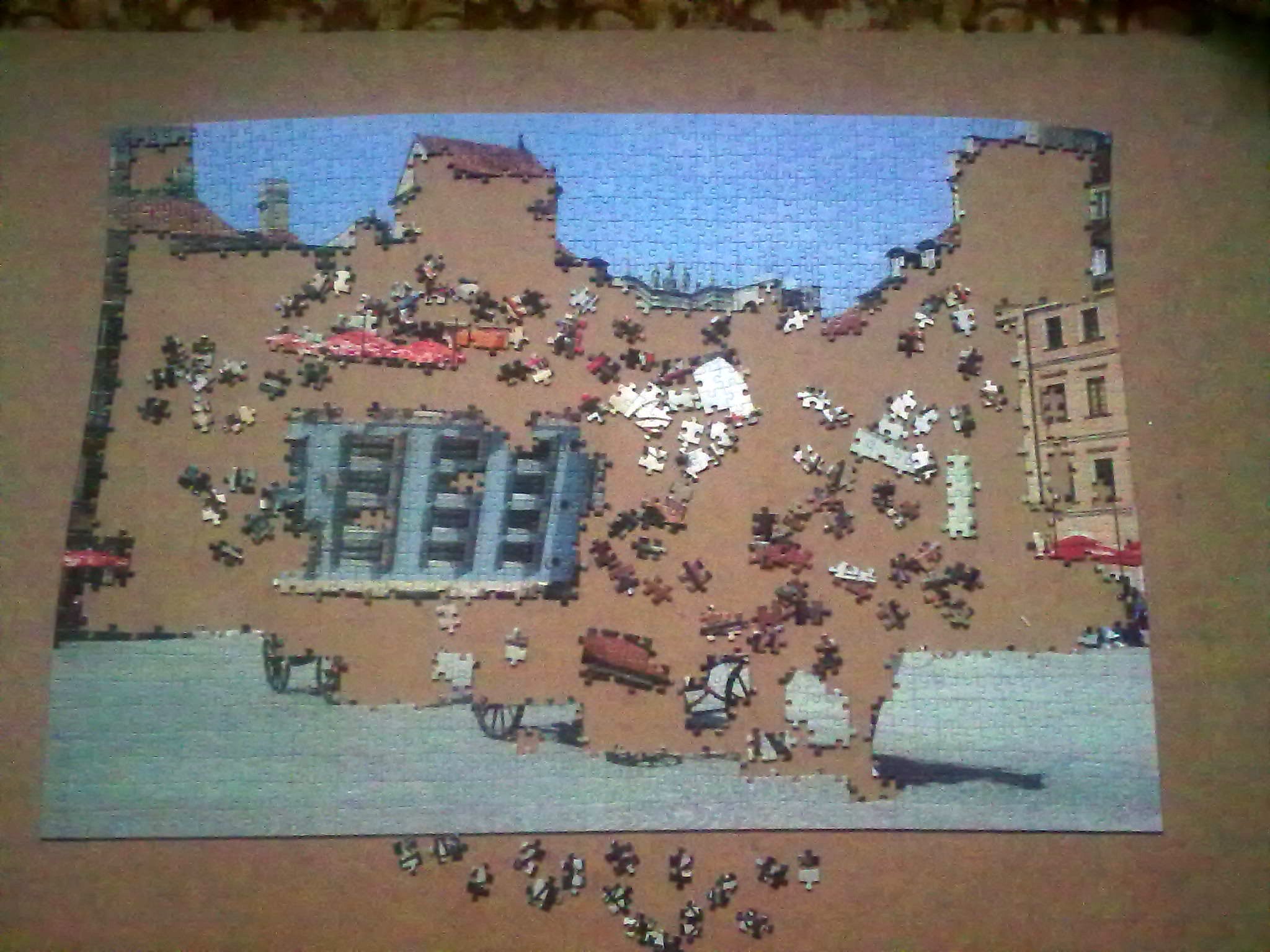 Собирать начала с неба. потом с асфальта, однотонные части пазла.