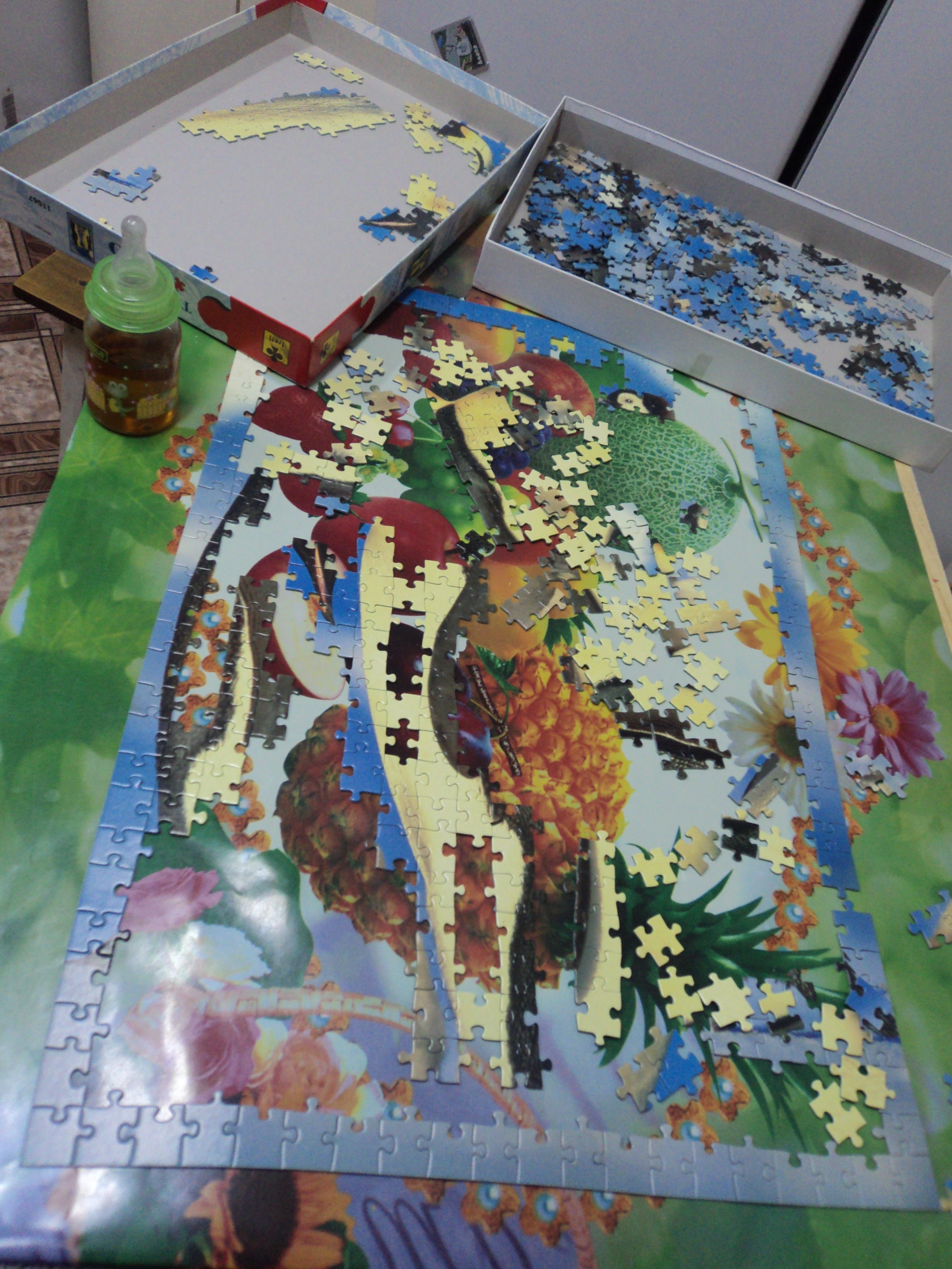 У меня ребенок спокойный, не кричит. К пазлам не лезет. Папа пытался показать, как надо ломать что мама собрала, он посмотрел и отвернулся, не хочет маме настроение портить. Да и собираю я когда ребенок спитTeaser писал(а):а маленький, иногда кричащий, помощник, наверное, принимает главное участие ;)