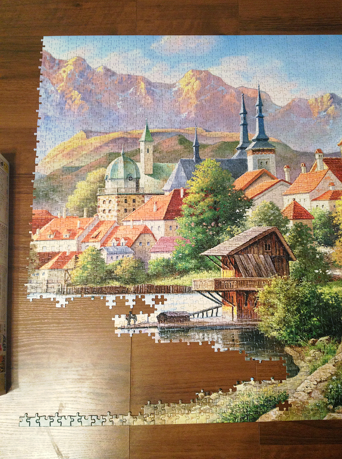 В целом пазл действительно несложный, кроме темно-зеленых деревьев собирается на удивление хорошо и приятно