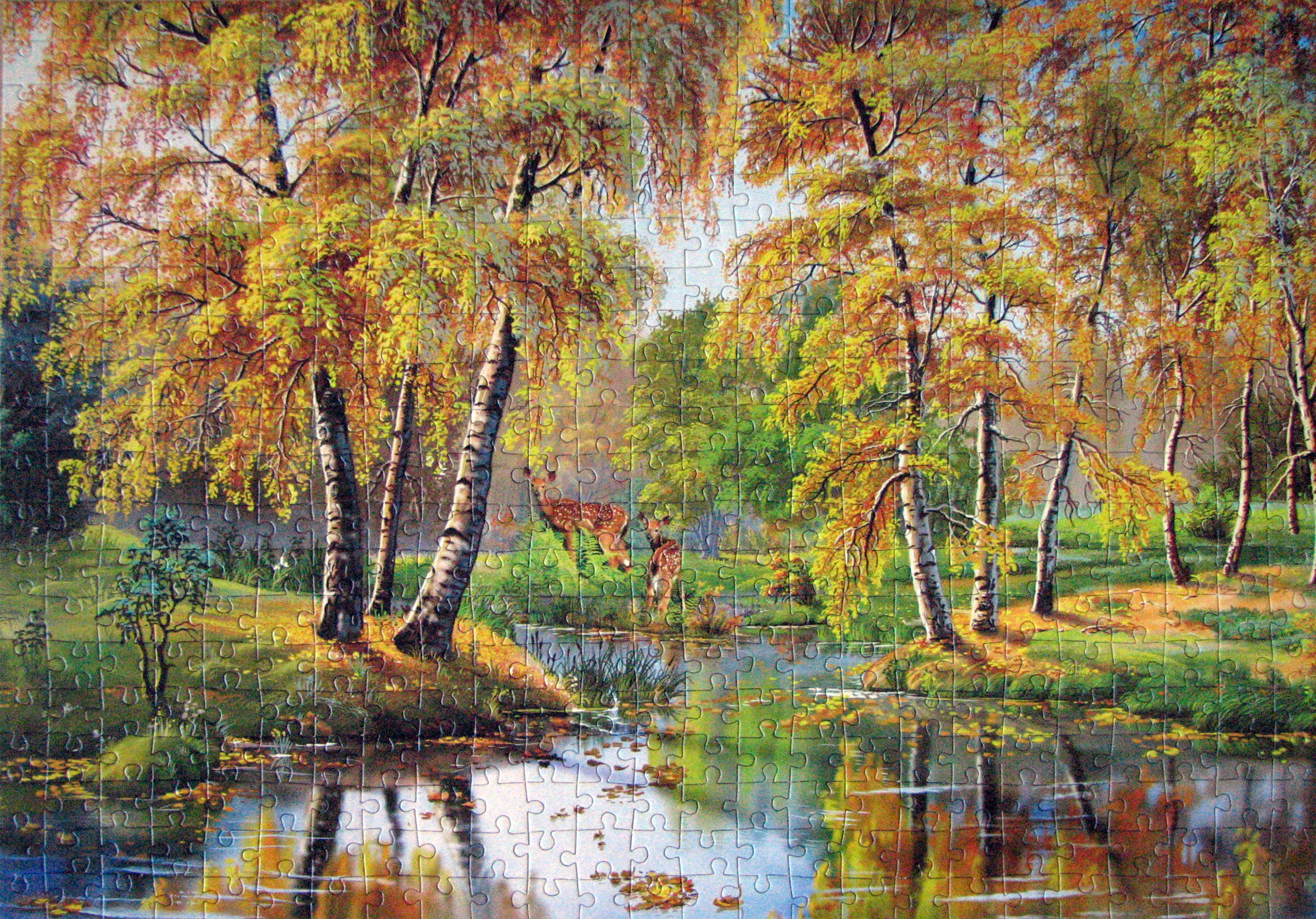 Начала я опробовать данного производителя с 500-ки, так как в данный момент у меня нет места, чтоб собирать пазлы побольше. В запасе ещё 1000-ик лежит. Из приятного - нарезка понравилась, очень разнообразная, сцепка хорошая, смогла поднять за уголки. Из неприятного - пазл темнее, чем картинка на коробке, сначала было трудно ориентироваться откуда та или иная деталь. И ещё картон тонковат. Также неудобно, что у картинки нет ни только названия, но даже артикула. Долго думала, как его обозвать, решила, что "Осень в лесу" подойдёт.