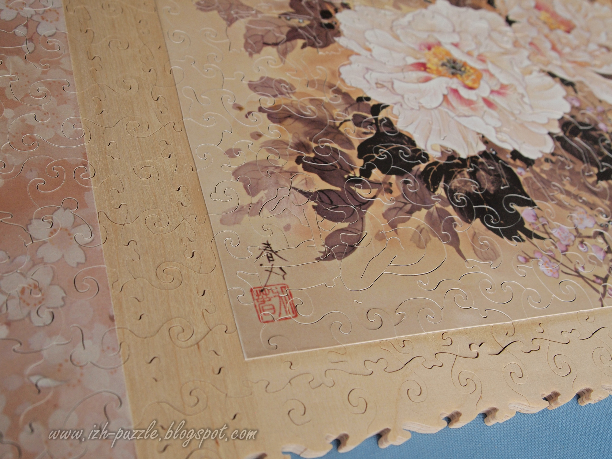 Пазл сделан из трёх отдельных постеров, соединённых рамкой в виде триптиха. Задачу усложнило то, что правый лист был меньше двух других. Для равновесия я также уменьшил и левый. На сегодня это мой самый большой пазл.