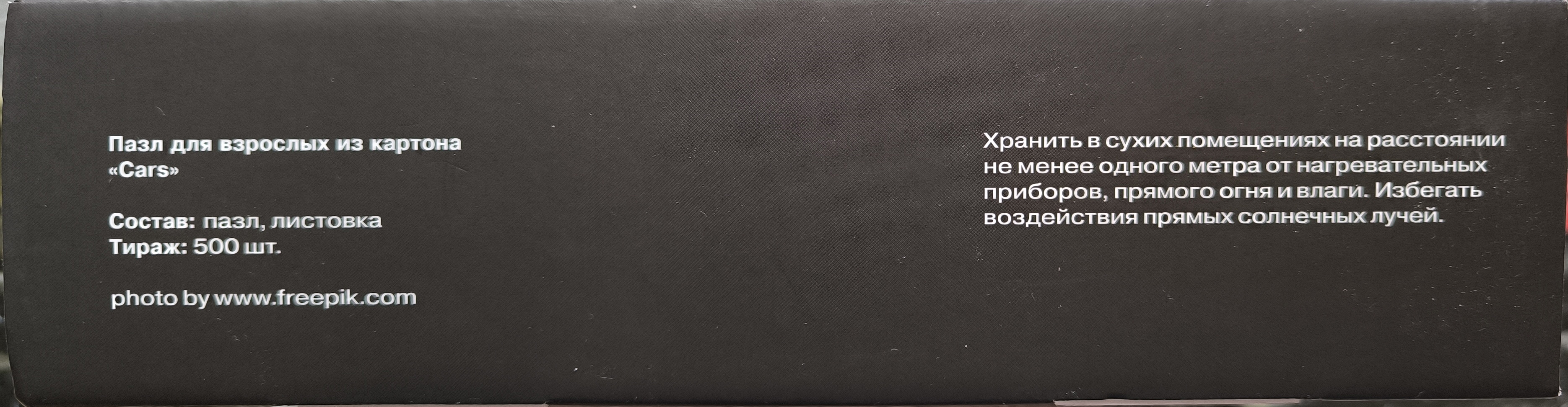 Написано "В коробке Вы найдете листовку с изображением и схемой сборки пазла". И указано, что формат листовки А4.