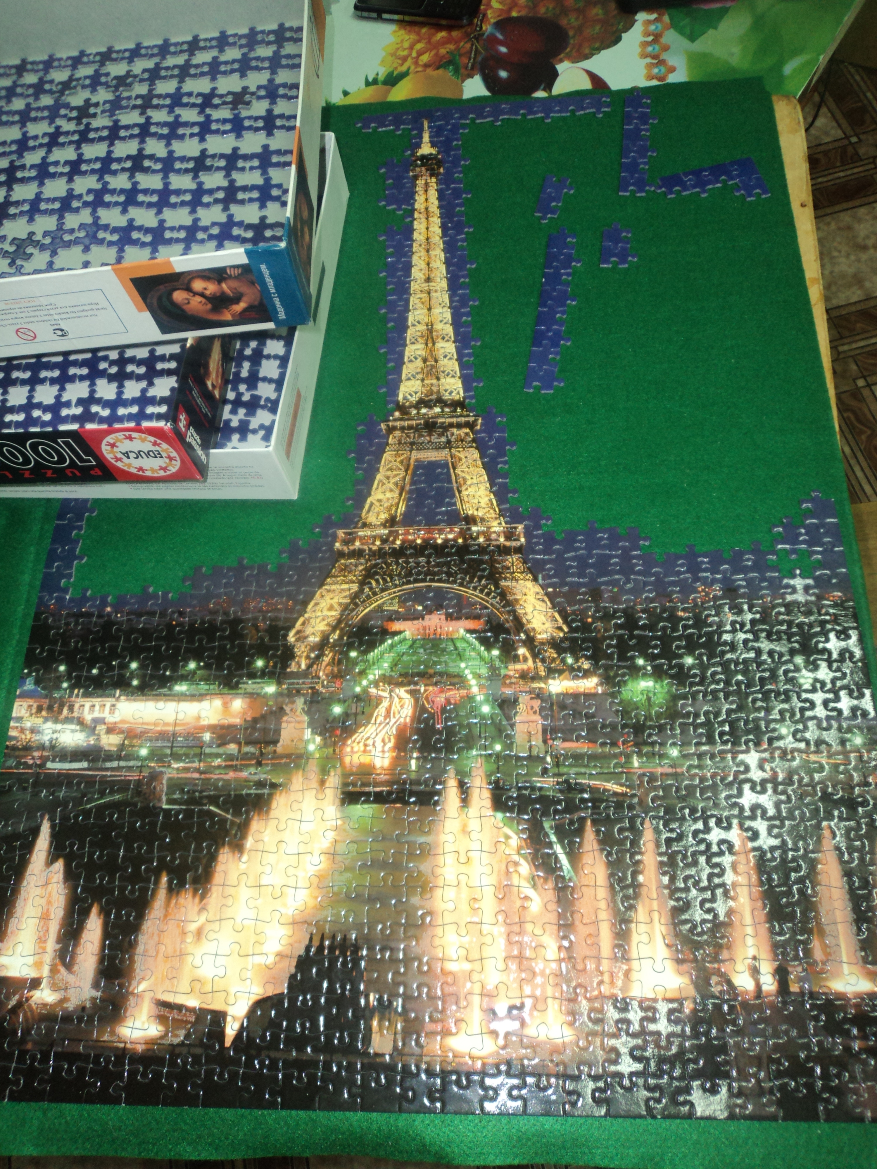 Эдука не самый простой в сборке пазл из-за особенности нарезки, особенно однотонных участков. Я в таких случаях откладываю отдельно детальки с "попками", и сортирую оставшиеся детали по форме наклона в ту или иную сторону зацепов.