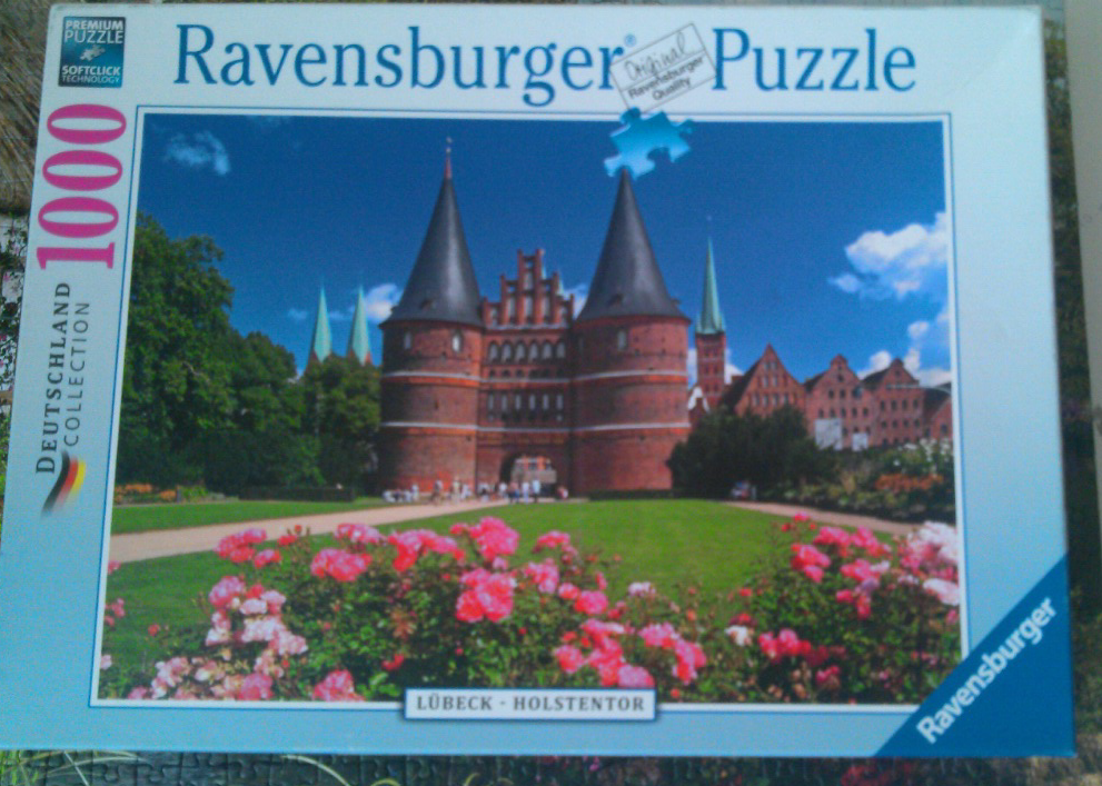 Сувенирный пазл от Равенсбургера, привезенный из города Любек и отображающий тамошние достопримечательности.