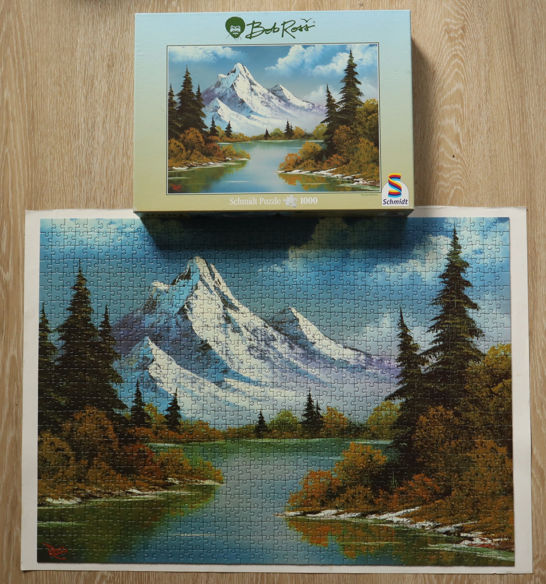 Bob Ross был художником-копиром. Он эти картины по 20-30 штук в день рисовал. Названия ему надо было откуда-то черпать? У него одного и того же пейзажа по 10 вариантов. Я не удивился бы, если бы он эту картину "табуретка" назвал. Вот прикиньте, нарисовал ты 15 вариантов одной и то же картины (ну работа у тебя такая), как их все назвать? Есть, во всяком случае, в русском разговорном жанре и географических названиях варианты, типо "Молчаливый истукан", "Грозящий небу" и т.д Так почему не отблеск или задумчивость?