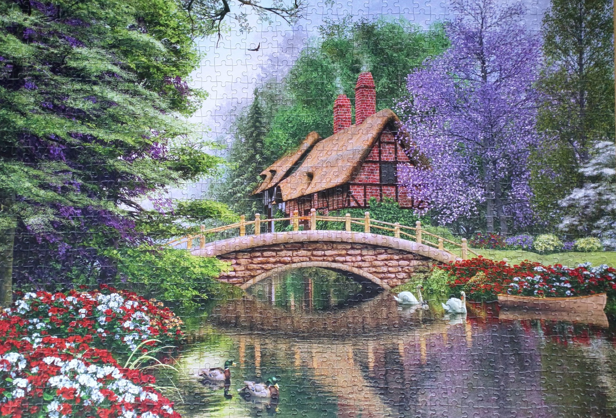Ну дак, домик есть, мостик есть, лебеди есть, цвяты есть, дерево сиреневенькое на месте, ещё и уточки бонусом, красавчик