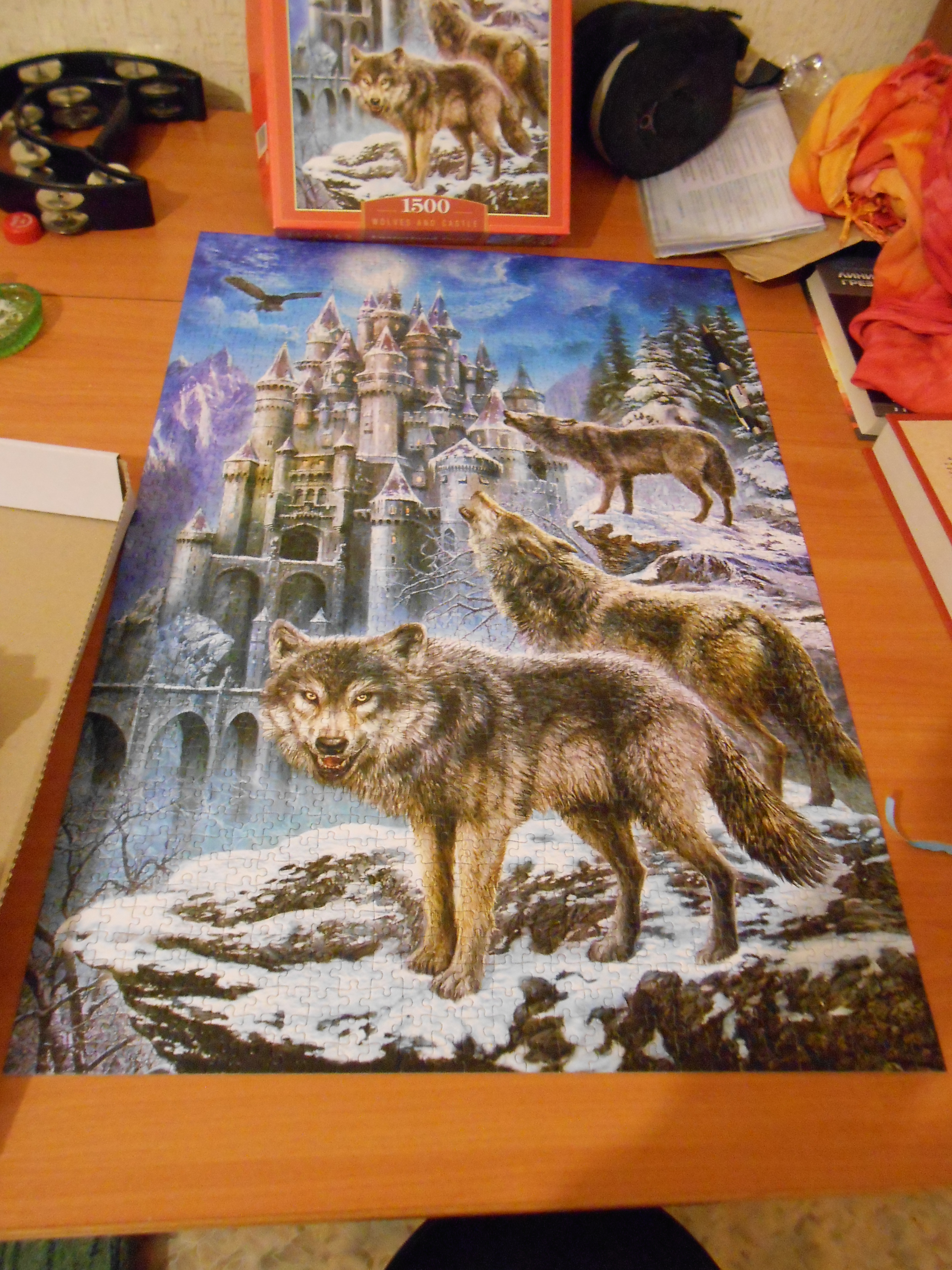 Пазл оказался очень сложным для меня,особенно сборка волков.Процесс был долгим,но в результате вышла очень красивая картина.
