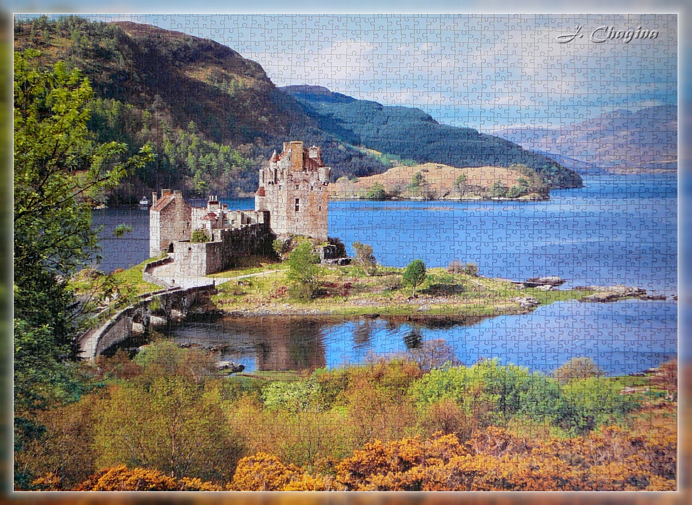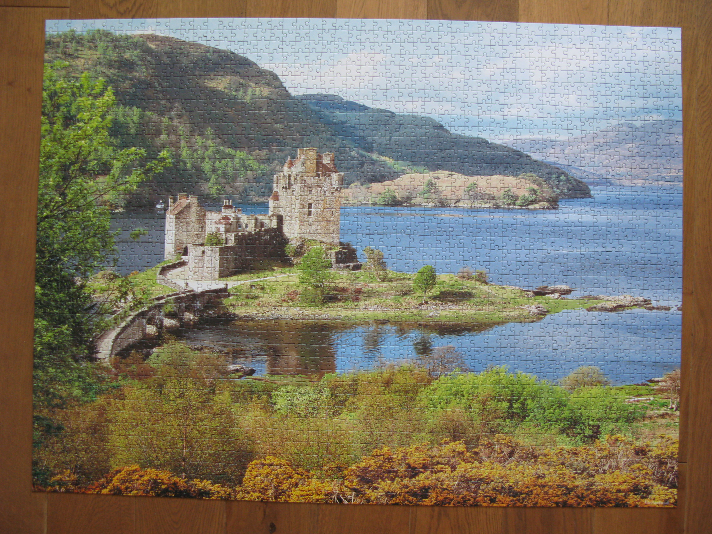 Когда я привезла коробку с этим пазлом на дачу. папа мой посмотрел внимательно и сказал: "Я собираю замок. Ты - всё остальное!". Сказано - сделано! Вот так и был собран это шотландский пейзаж.