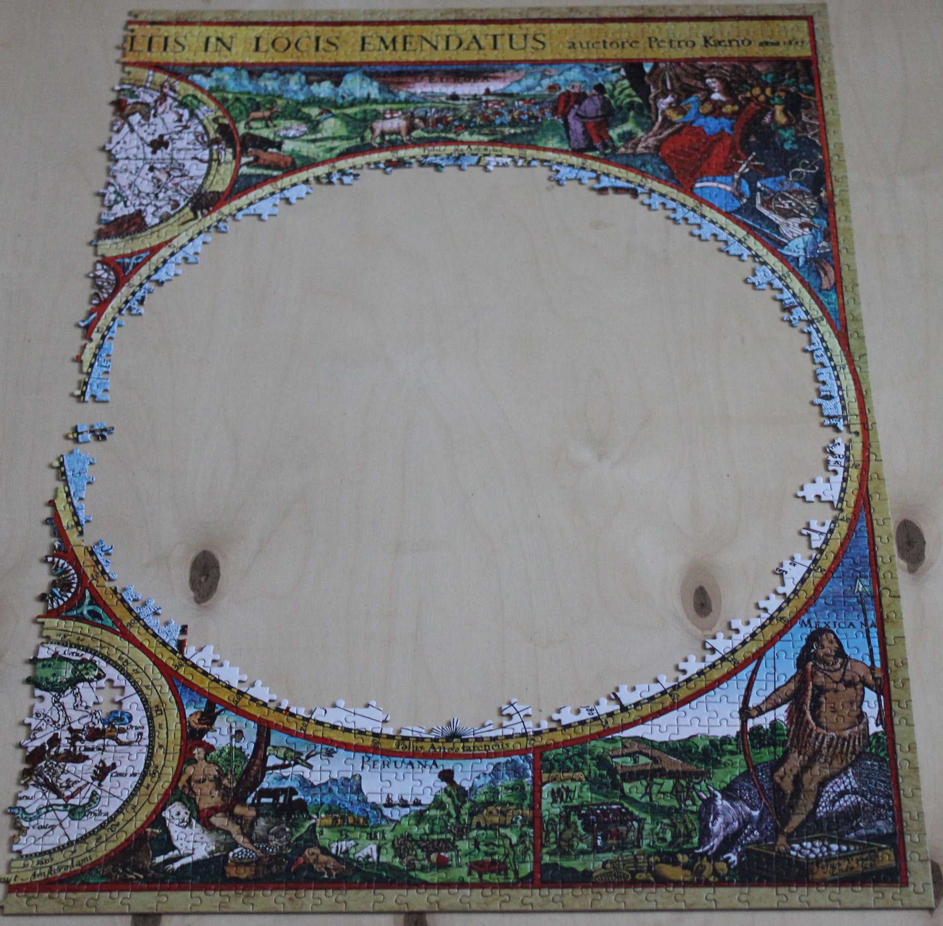 Интересное дело! У Трефла была такая же карта, только полторашка. И только счас я заметила: понятно, что карта полушарий как положено, надпись тоже слева направо, и звездное небо також. А вот эти по углам аллегорически-мифологические художества расположены зеркально: у Трефла Европа и Америка слева, Азия и Африка справа, у Кастора, как видим, наоборот. Это почему это так? Как это так вышло, и что сие должно значить?