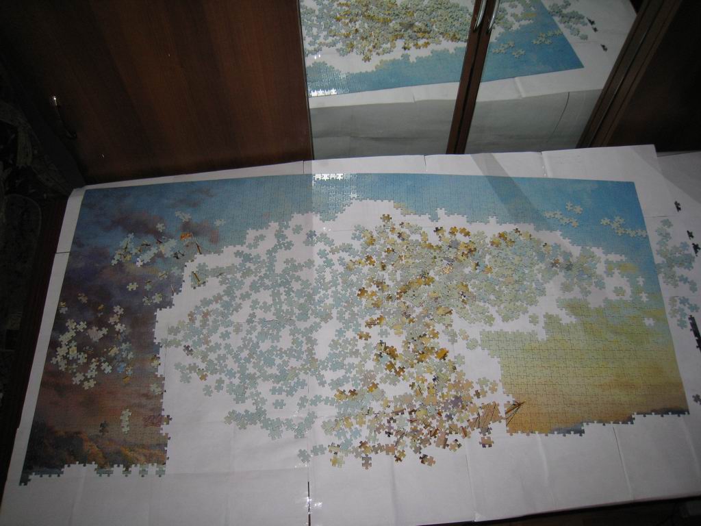 Пока вот сколько собрал, небо тяжело дается, сцепка между деталями вообще отсутствует, 3 детальки даже не поднимешь за одну, рассыпаются, года 3 назад дарили парусник от степа на 560 деталей вот там была хороша сцепка, за 2 уголка можно было поднять и не развалится.