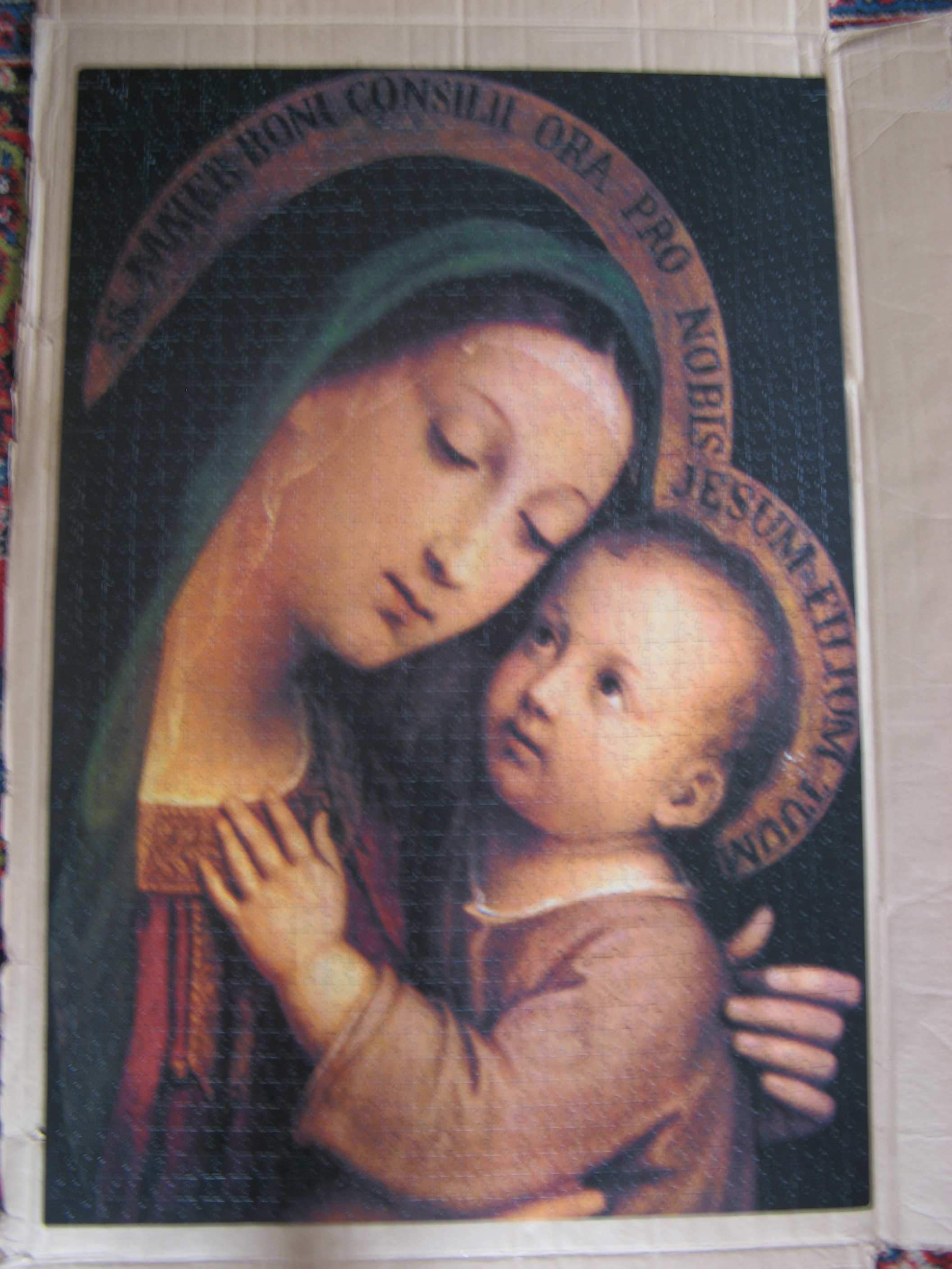 Мне давным-давно притащили этот пазл с просьбой собрать. Сложила рамку на коврике, закатала и в угол. До сих пор никак не то что не соберу, а даже не соберусь