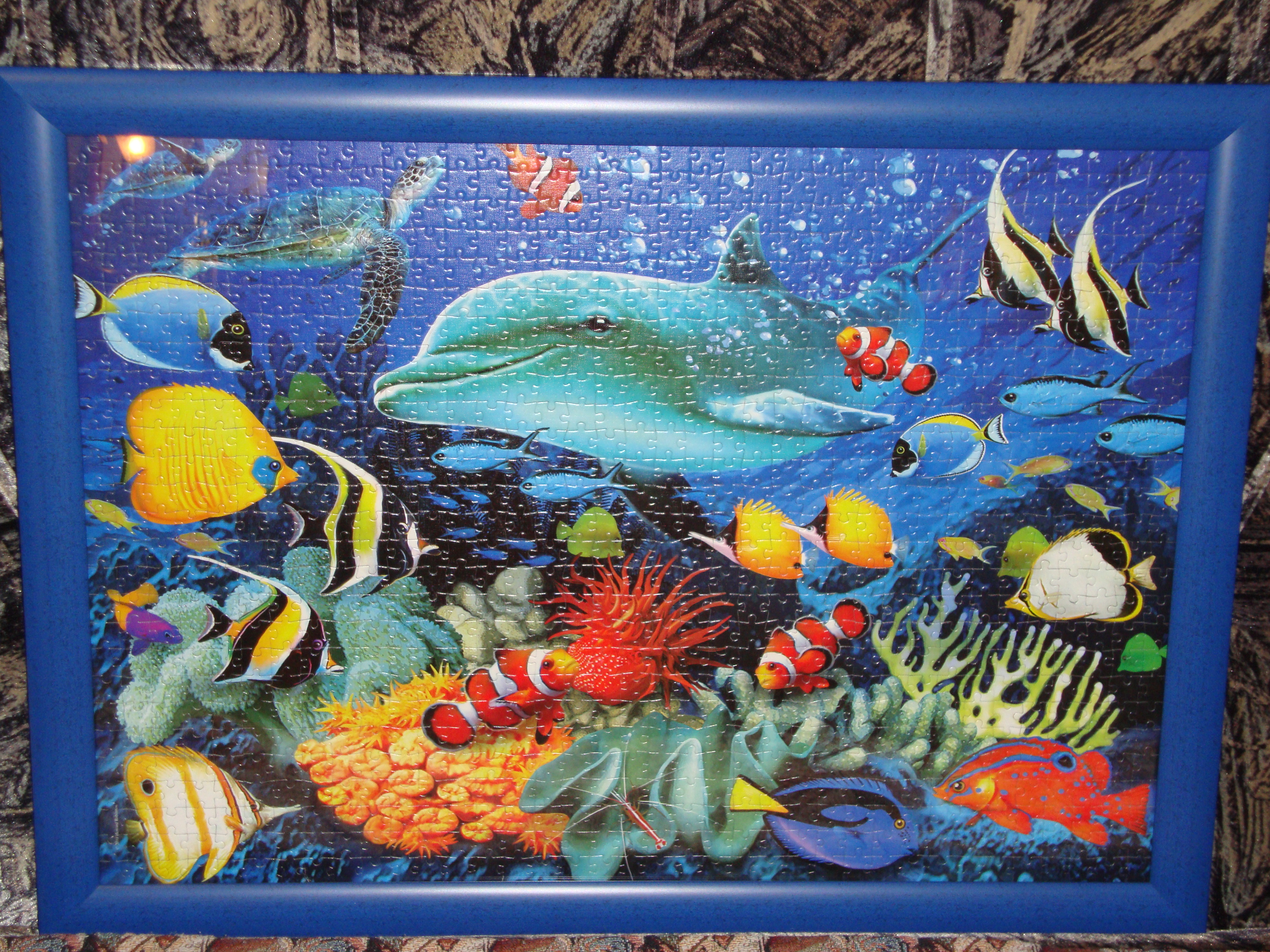 Пазл уже собрала. Процесс сборки не фотографировала, только готовый результат. Собрался за два вечера. Из сложного для меня, могу отметить только рамку, перебирала верхнюю и нижнюю несколько раз потому как сложившаяся картинка в нескольких местах не совпадала с рамкой. Детальки рамочные подходят сразу в нескольких местах, хотя я читала, что у Клементони все идеально и каждой детали строго свое место предназначено. Пазл склеила эдуковским пакетированным клеем, оформила в багетной мастерской, повесила на стену. ЗD эффект и правда существует! Теперь мысли только про отпуск, моря-океаны и заграничные страны!