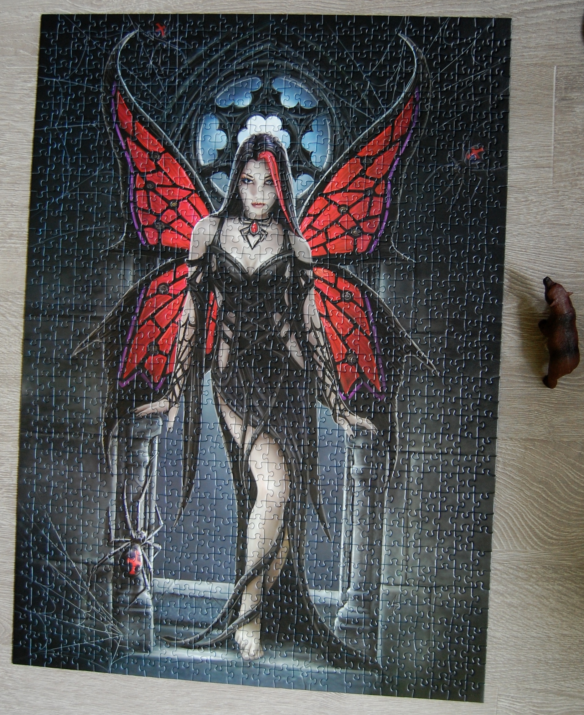 Пазл чрезвычайно сложный, куча-куча черных и серых деталей, даже несмотря на разнообразную равенскую нарезку, двигался очень тяжело