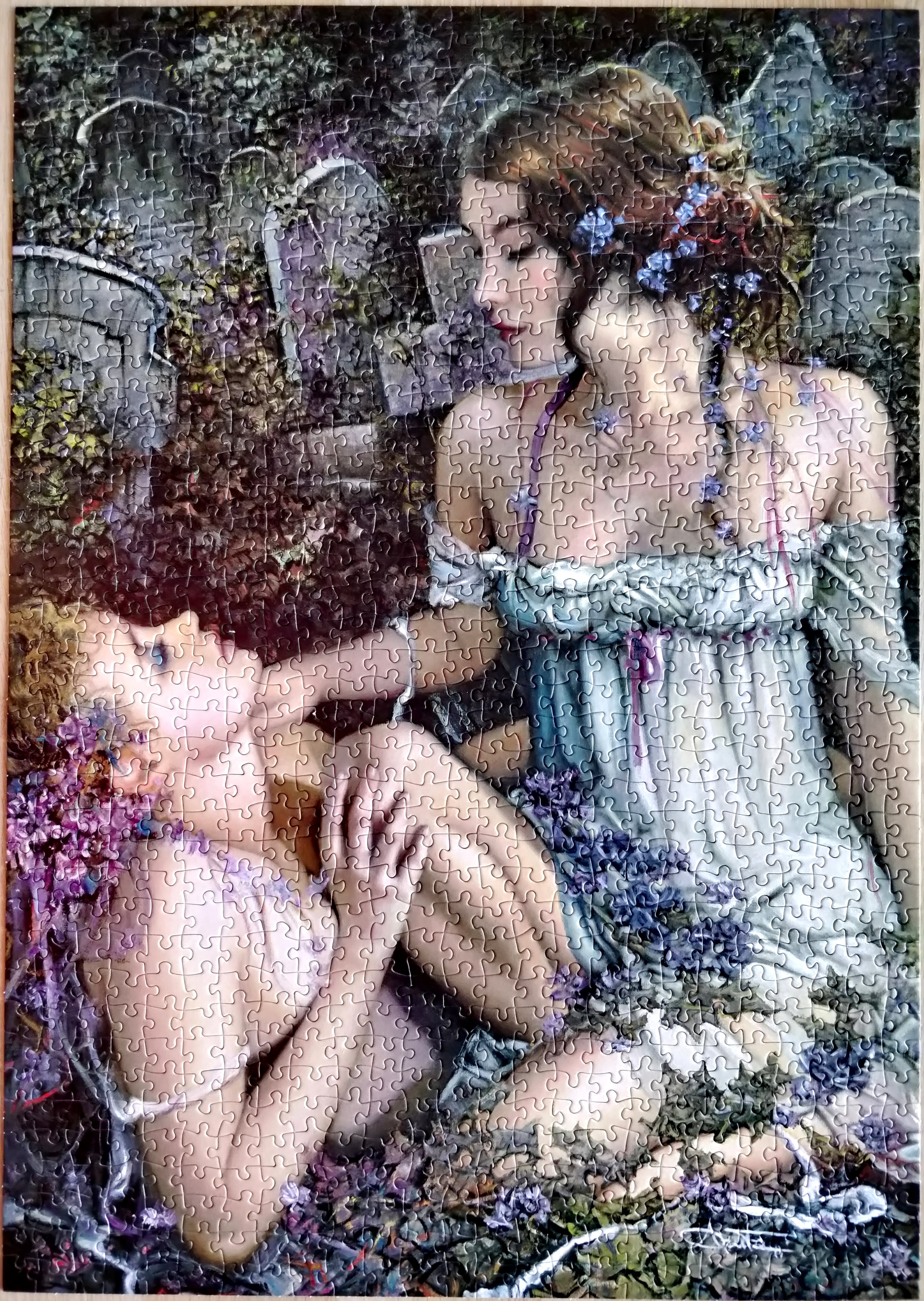 Довольно редкий пазл в железной коробке от испанской художницы Аранцы Сестайо, известной своими работами с чувственными девушками на кладбищах. Две обольстительные красотки в неглиже, ласкающие друг дружку своими холодными руками