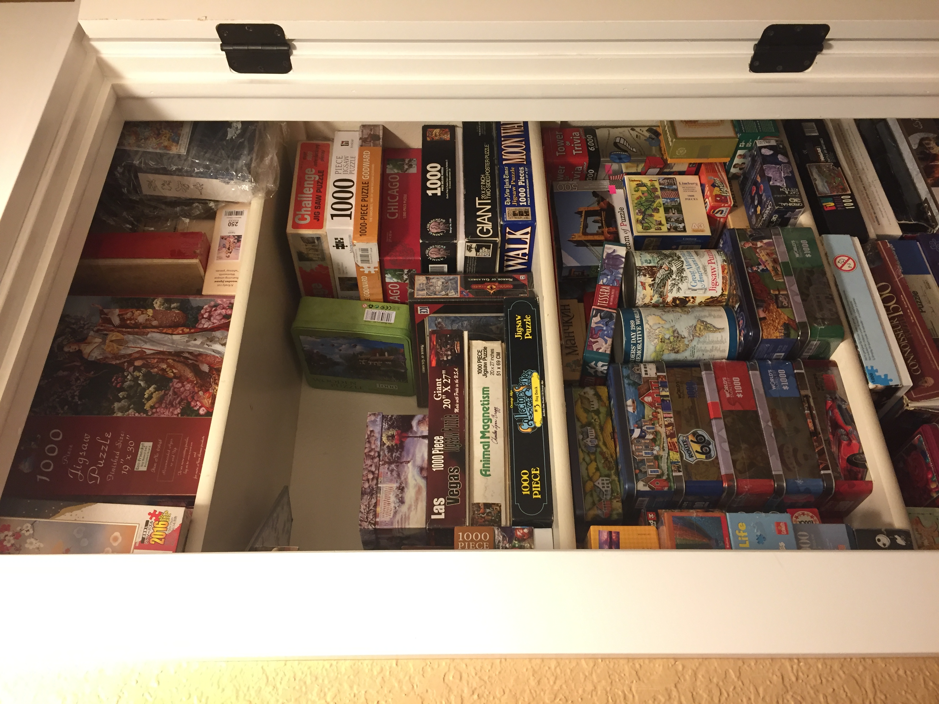 После аккуратного укладывания в шкафу даже еще место осталось. Большинство коробок - разные производители.