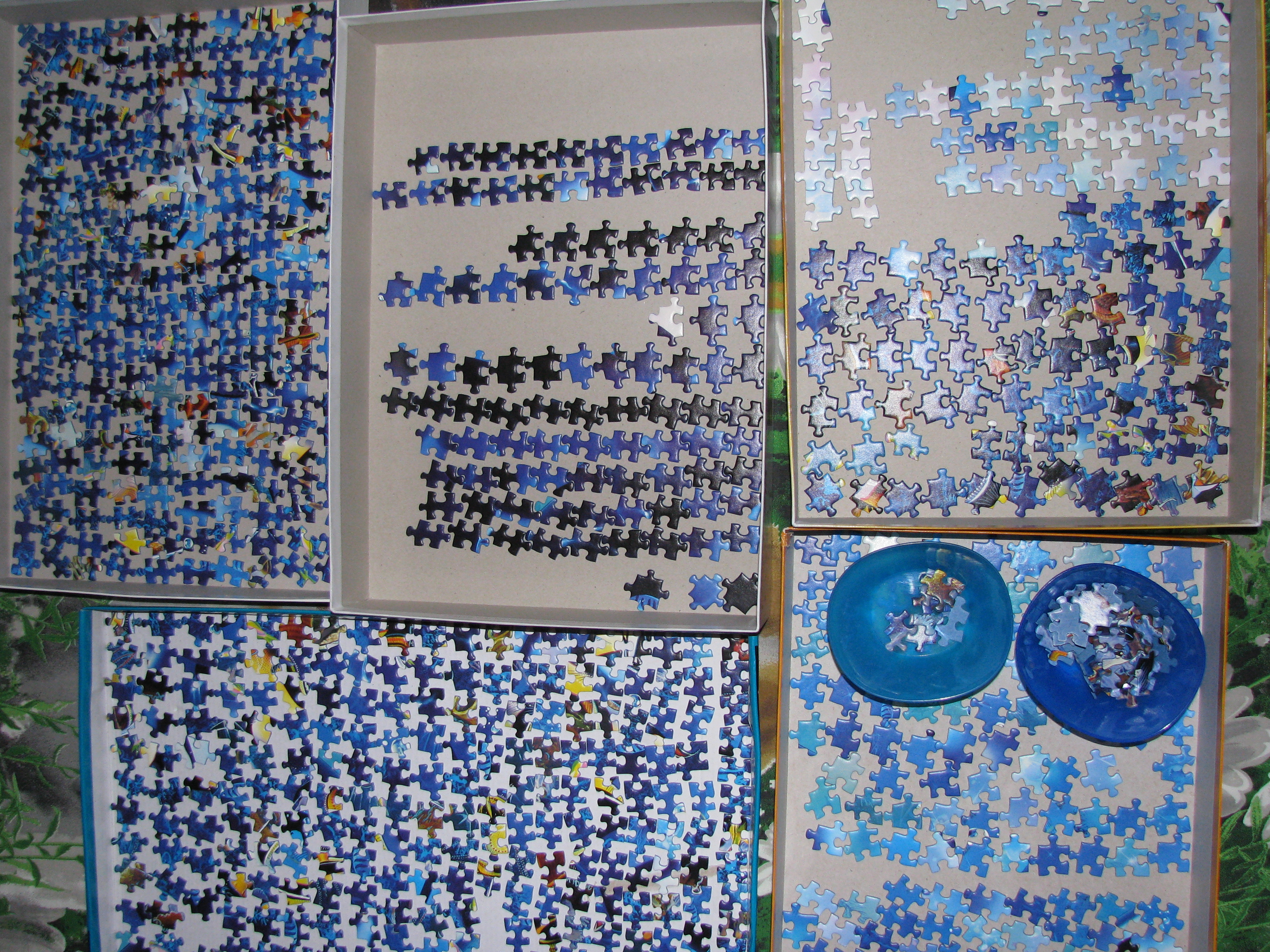 . Собираю только ночью, пока младший пазломаньяк ломатель спит. В перый день ,т.е. ночь сортировала по форме и цвету, собрала рамку.