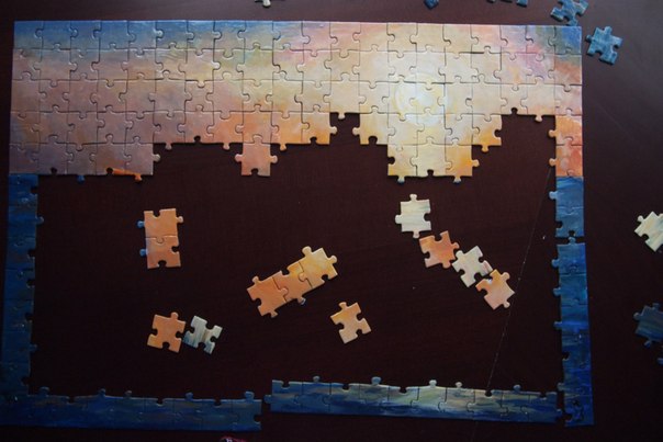 Помните мою затею с перекрашиванием пазла? Уже забыли? А она все-таки завершилась успехом. Несмотря ни на какие дипломы и прочие отвлекающие от творчества факторы, картина все-таки была с великим трудом зкончена, и сегодня мне ее подарили!!