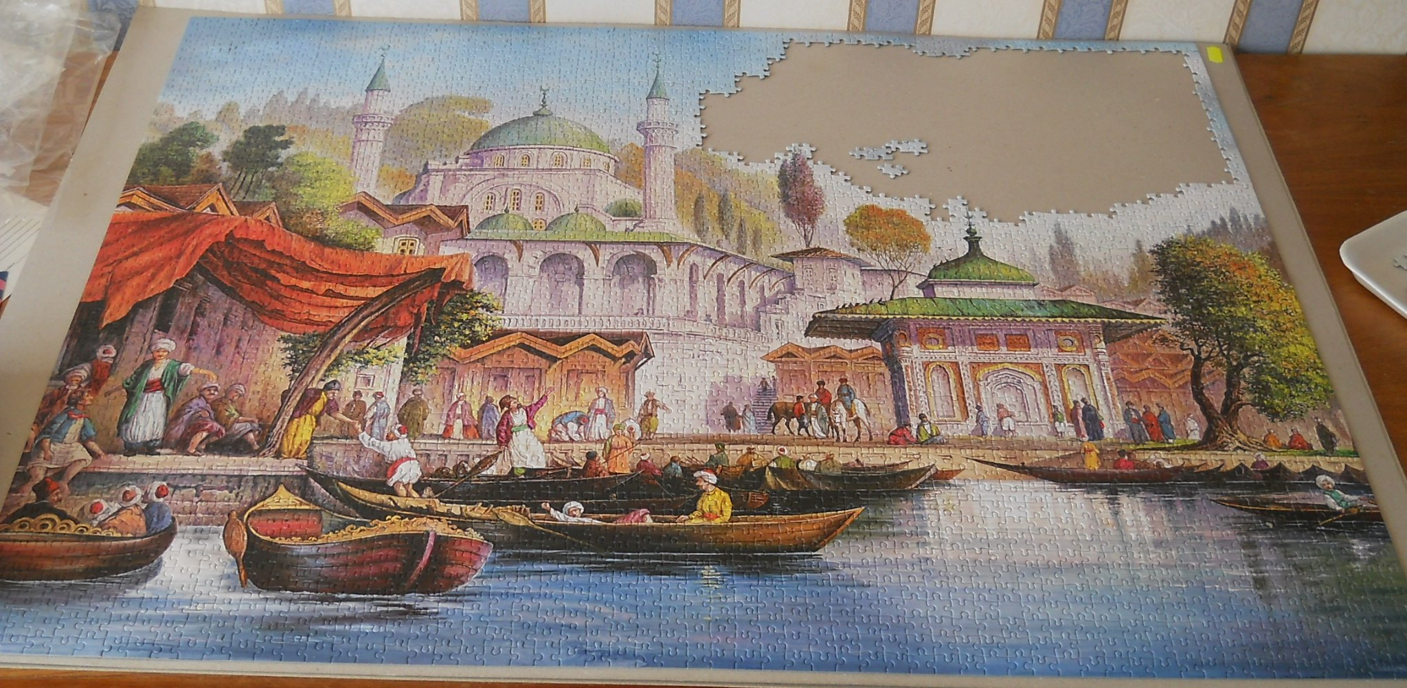 Вот поэтому я обычно и начинаю пазл собирать с больших фоновых участков, чтобы уж в начале с самым нудным разделаться, а потом только удовольствие получать. А то знаю я себя, ведь оставишь на последок, да так и будет лежать до скончания веков, лучше уж сразу "отмучаться".