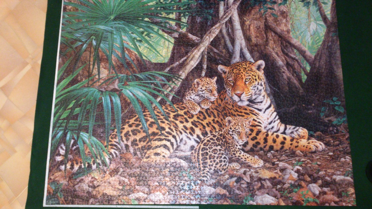 Уууу, какая сложная оказалась пазлина! Нечего было пакеты смешивать Огромное множество темных элементов с коричневыми крапинками, почти невозможно догадаться, в каком месте пробовать их вставить - вверху, внизу, слева или справа, или это вообще часть ягуара.