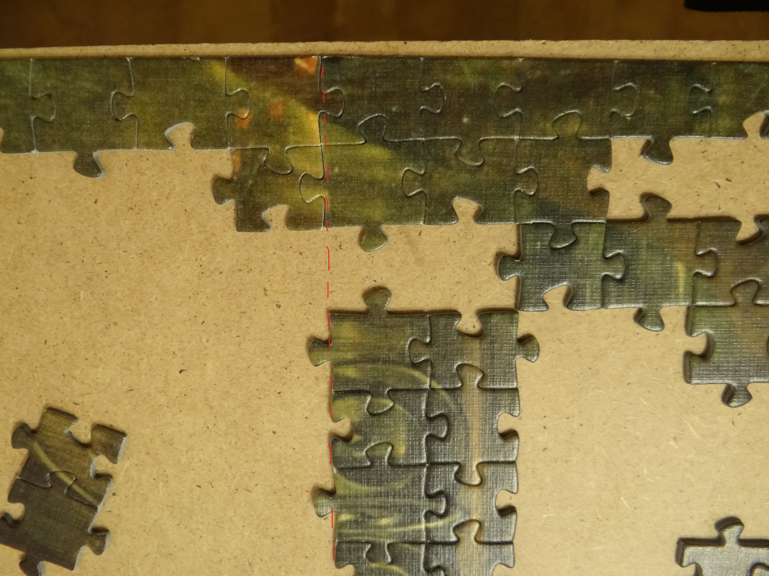Сфоткала свой крупно, середину. У меня пазл вертикальный, это левая кромка. Видимо, это низ вашего - по нарезке не то. Хотя нарезка аналогичная.