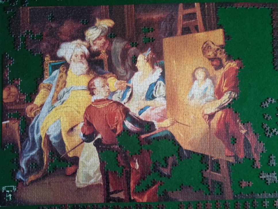 Вот такую картину решила я собрать. Открыла коробку и обомлела – одни черно-бордовые детальки со старой нарезкой без попок. Правда, еще встречаются и желтые детальки, но большинство из них скорее черно-бордово-желтые. В общем, процесс сборки обещает быть неспешным, умеренным и неторопливым :| И по традиции, пару слов о художнике