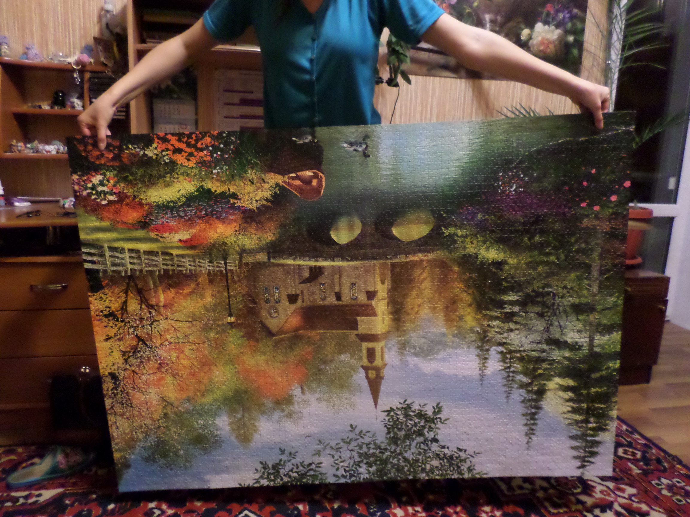 Отличный пазл. И легкий. На сборку ушло 6 дней+2 дня на сортировку. Правда цвет неба на пазле отличается от коробки-более синий