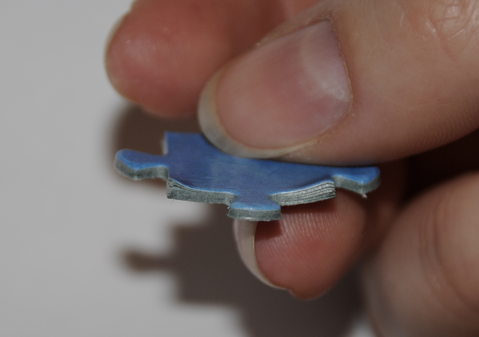 В нескольких местах (примерно 10-15) кусочки разрезаны вот так...т.е. края разрезаны в двух местах и топорщатся от чего плохо сцепляются