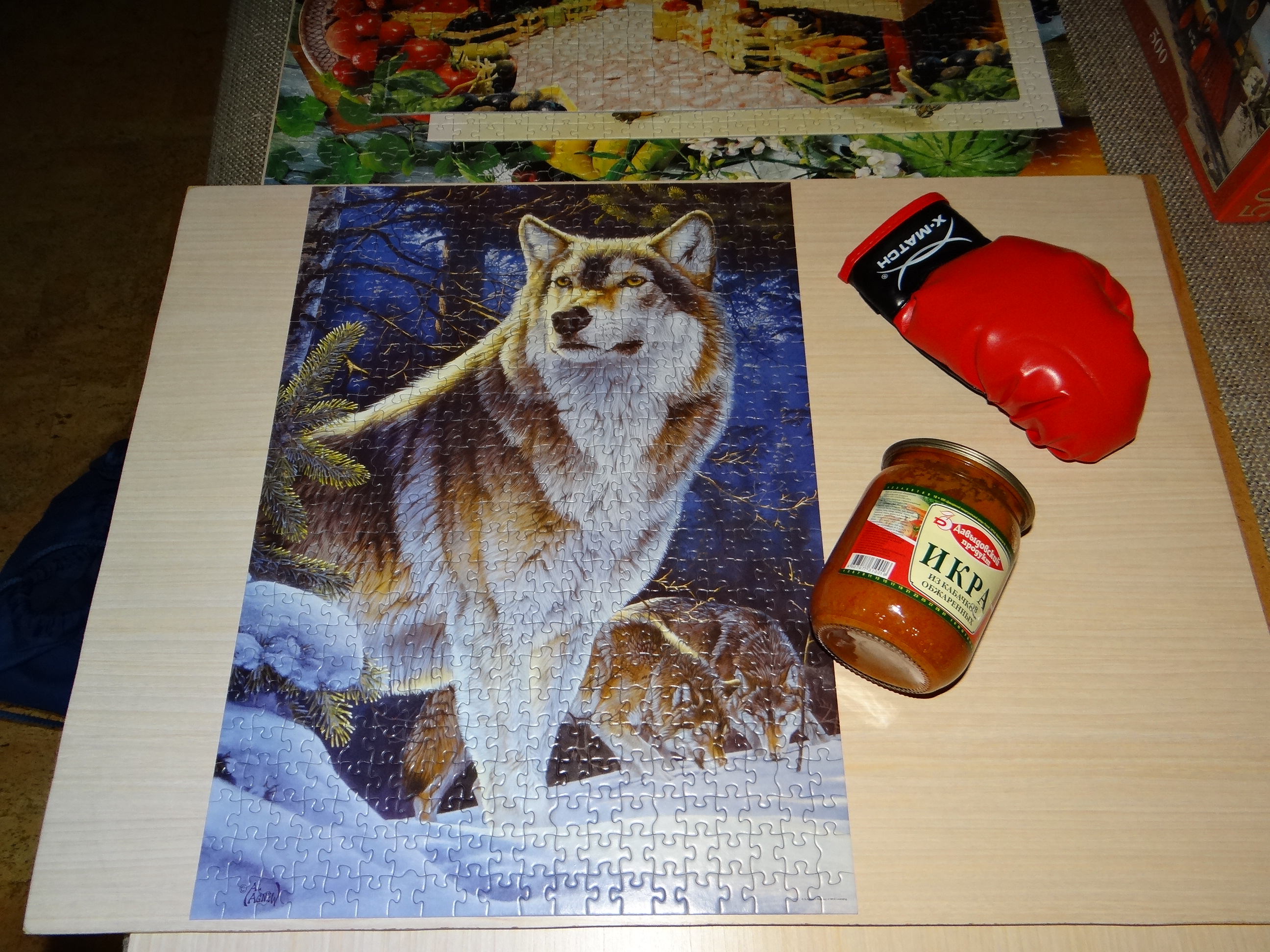 Сфотографировала по привычке уже с перчаткой, потом сгоняла на кухню за баночкой икры