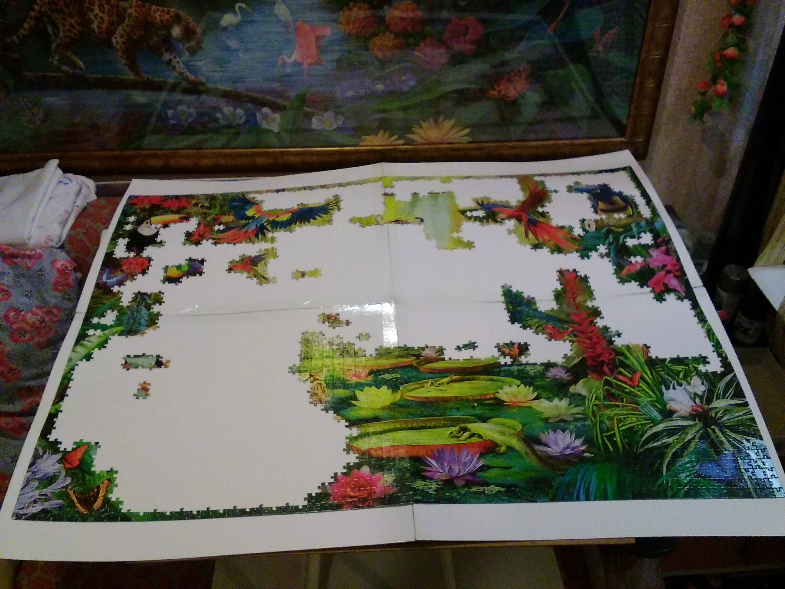 Собрать тигров, попугаев, цветки, а дальше ковырятся в зелени.