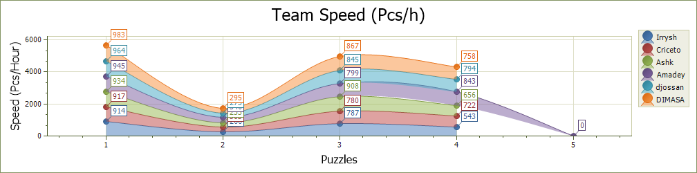 | # | Puzzles: | 260 | 1000 | 500 | 1000 | 500 | Total | Pcs/hr |