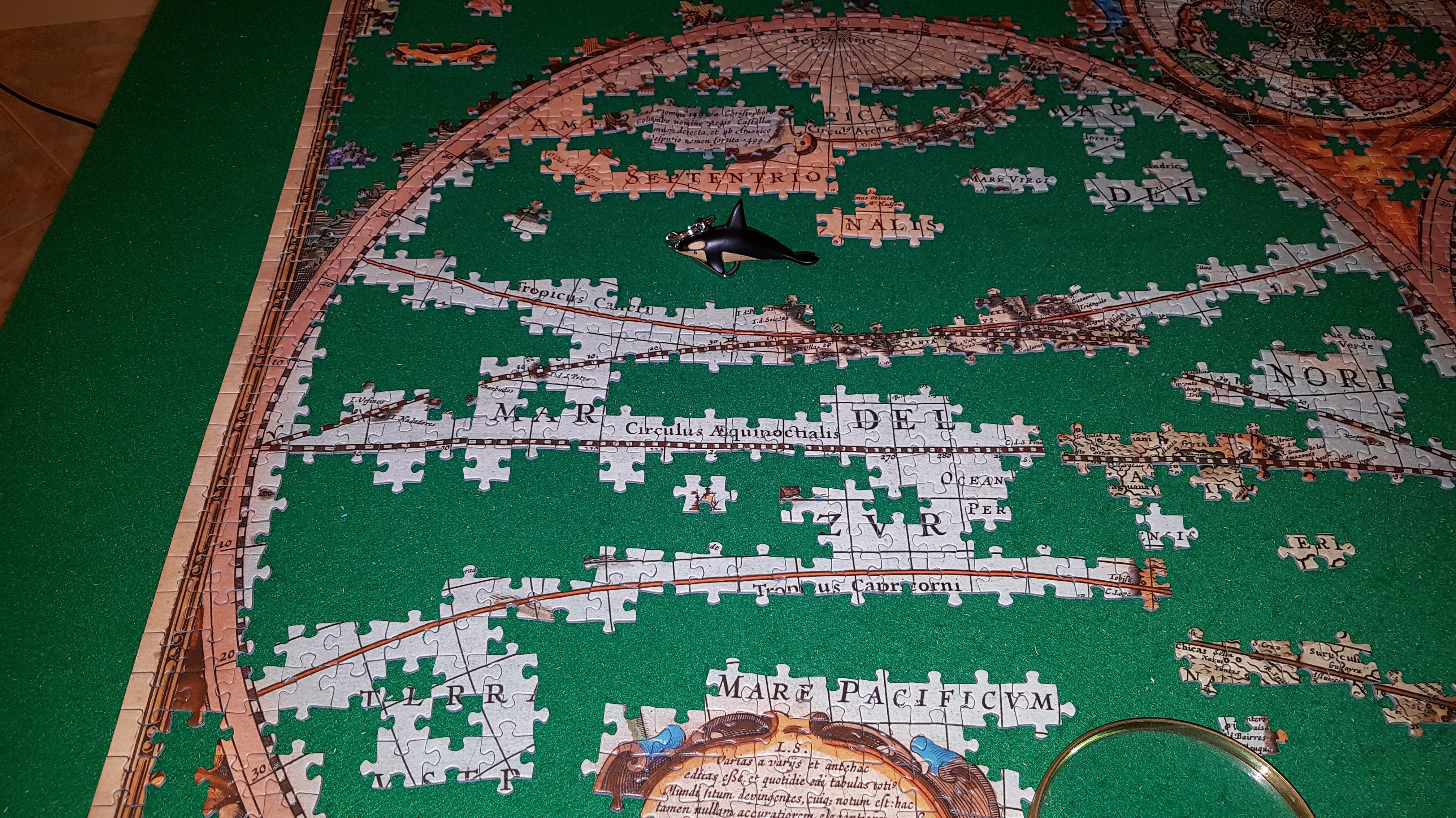 Прежде всего, я начал с сборки частей, которые составляют написание заголовка карты, безусловно, самой простой части: Позже я перешел к построению границы карты. Ничего особенно сложного, атаки очень надежны и не вызывают никаких сомнений относительно правильного местоположения: На данный момент я обязан сделать перерыв, доступное время очень мало в эти дни. Я, вероятно, возобновлю работу над головоломкой в понедельник вечером.