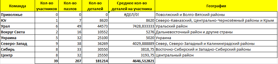 :!: Второе место в командах по регионам принадлежит Уралу, участники которой целый год копят силы, почти не показываются на форуме, а потом как выстрелят Алисами красивущими пазлами и как удивят потрясающей скоростью, что хоть не вылезай из их красивенных тем. И да, мы ведь очень по вам все соскучились и так рады видеть вас в Пазлозиме!