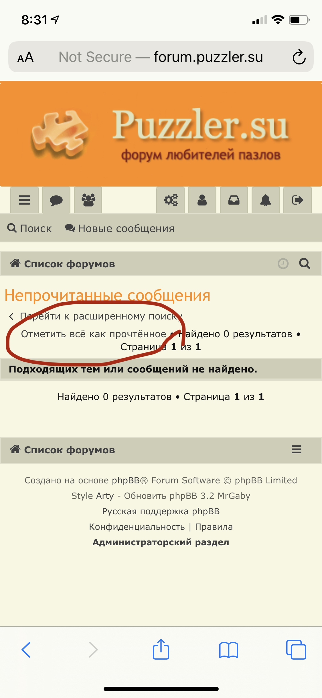 3. Убрать "отметить прочтенными" с первой страницы