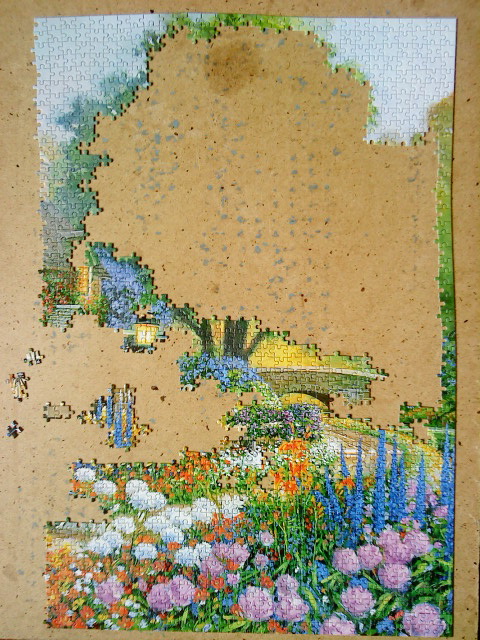 Яркие участки практически собраны , осталась зеленая масса деталек разных оттенков, что несколько облегчает сборку
